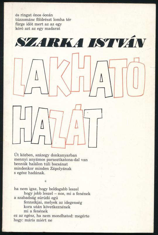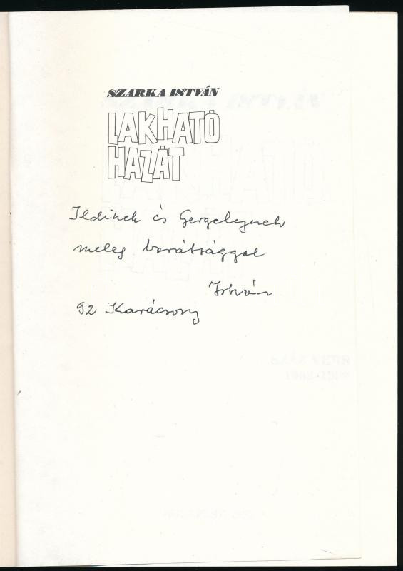 Szarka István: Lakható hazát. Száz vers 1952-1992. DEDIKÁLT! Bp., 1992. 100p. Kiadói papírkötés.