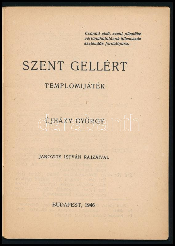 Ujházy György: Szent Gellért - Templomijáték. Bp., 1946. 31p. Kiadói papírborítóval.
