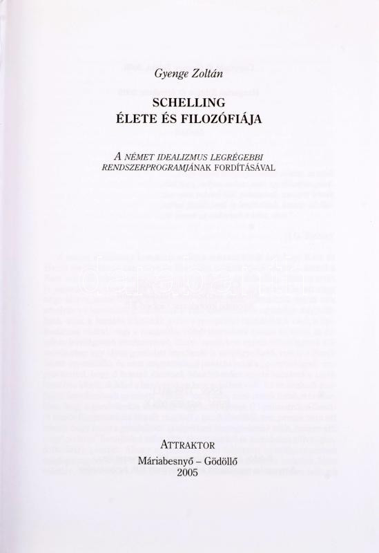 Gyenge Zoltán: Schelling élete és filozófiája. Máriabesnyő-Gödöllő, 2005, Attraktor. 252p. Kiadói egészvászon kötés, papír védőborítóval, jó állapotban.