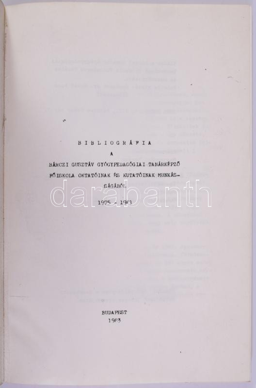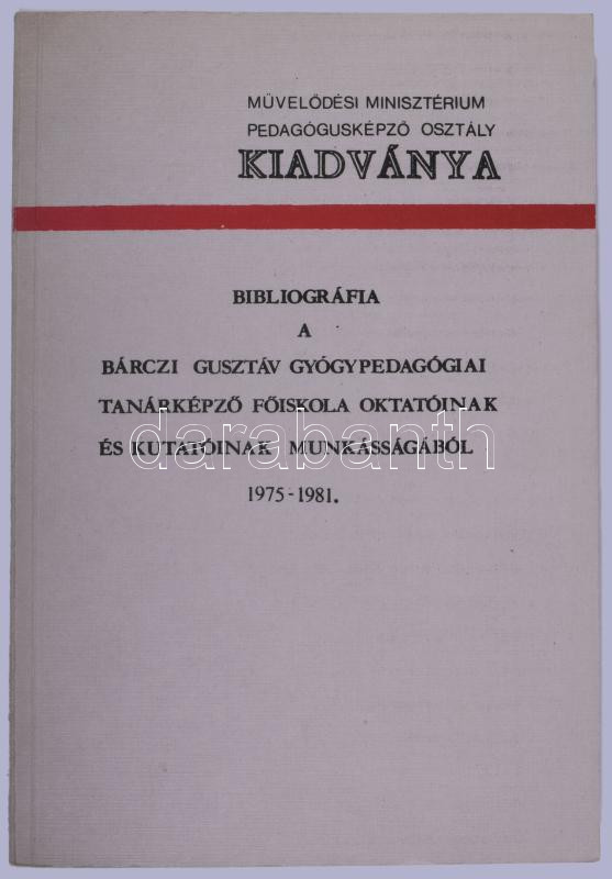 Mátéfy Györkné - Schumayer Izolda (összeáll.): Bibliográfia a Bárczi Gusztáv Gyógypedagógiai TanárképzÅ‘ FÅ‘iskola oktatóinak és kutatóinak munkásságából (1975-1981). Bp., 1983. Készült 500 példányban. Kiadói papÃrkötés, jó állapotban.