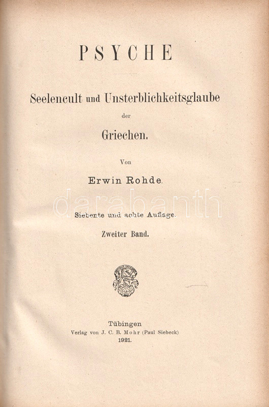 Psyche. Seelencult und Unsterblichkeitsglaube der Griechen. Band I-II. [Teljes mű, egybekötve.]