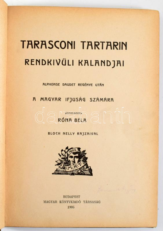 Tarasconi Tartarin rendkívüli kalandjai. Alphonse Daudet regénye után a magyar ifjúság számára átdolgozta Róna Béla. Bp., 1905, Magyar Könyvkiadó Társaság. 102p. Félvászon kötés,