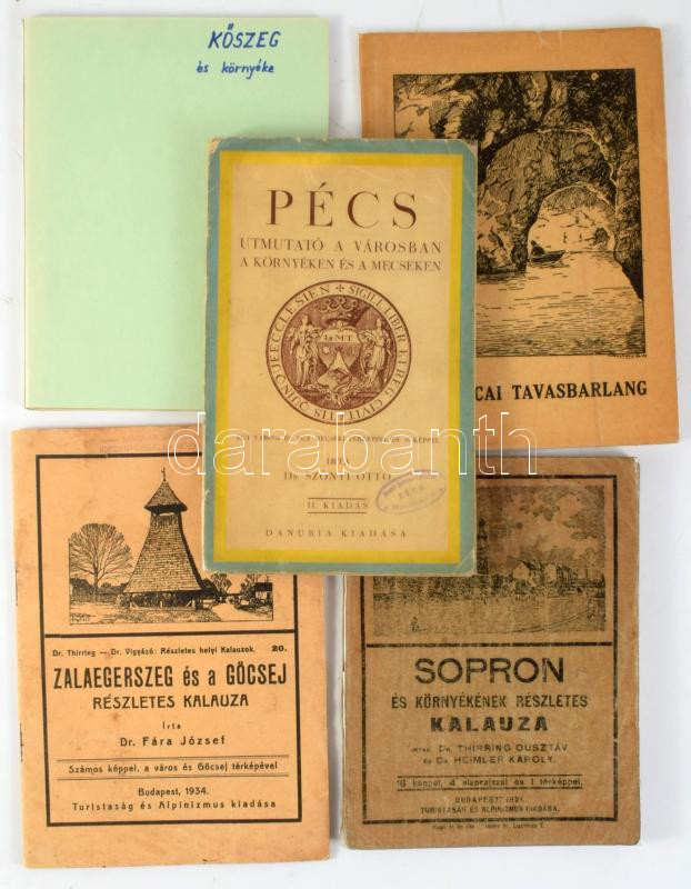 5 db régi városi helytörténeti kiadvány, turisztikai ismertető: Pécs, Sopron, Tapolcai tavasbarlang, Kőszeg és környéke, Zalaegerszeg és a Göcsej részletes kalauza.