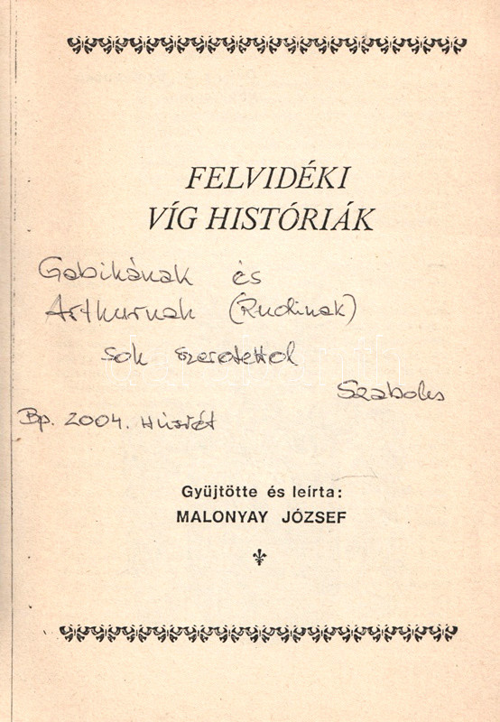 Felvidéki víg históriák. Gyűjtötte és leírta: Malonyay József.