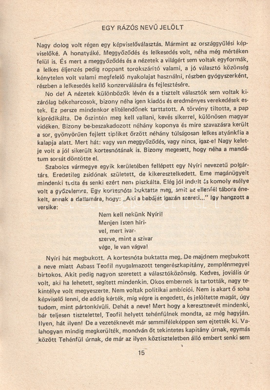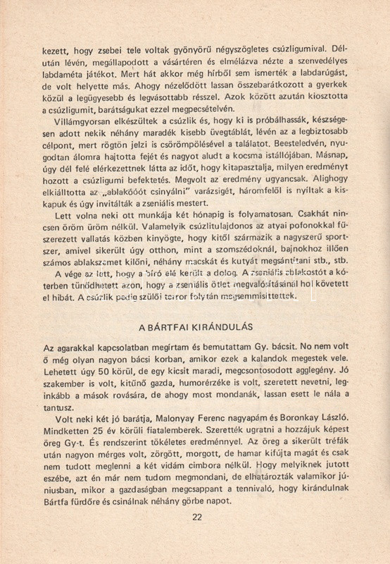 A felvidéki Malonyay-család zempléni ágából származó Malonyay József családjának és szűkebb pátriájának, Zemplén megyének anekdotáiból válogat: az anekdoták a sárospataki diákhistóriák, a vármegyei adminisztráció, a magyar-szlovák együttélés és a zempléni néprajz világából valók. Az ismételt határmódosításra tragikusan, a megyei adminisztráció világára kedélyesen hivatkozó mű értelemszerűen nem jelenhetett meg hivatalos kiadásban.