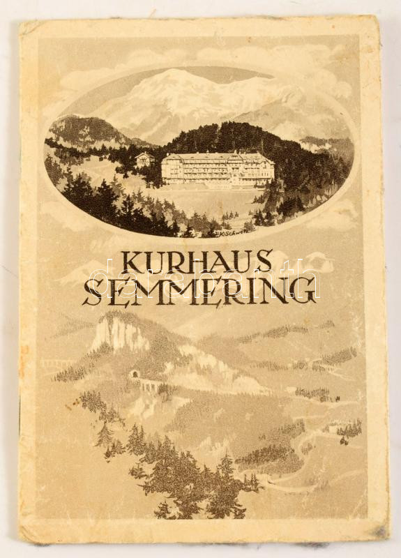 Kurhaus Semmering. Wien, én., Brüder Rosenbaum-ny., 8 sztl. lev. fekete-fehér fotókkal illusztrált magyar nyelvű prospektus, benne kihajtható lapokkal is. Kiadói papírkötés, kopott, foltos borítóval.