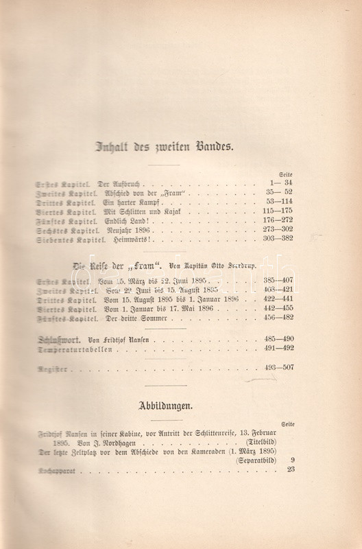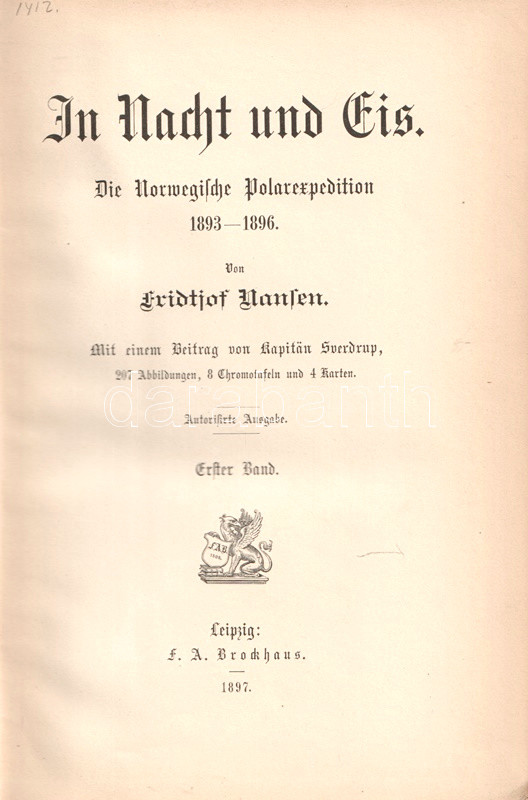 Nansen, Fridtjof: In Nacht und Eis. Die Norwegische Polarexpedition 1893-1896. Mit einem Beitrag von Kapitän Sverdrup. Band I-II. [Teljes mű két kötetben.]