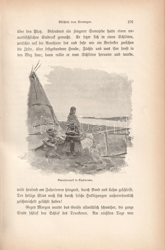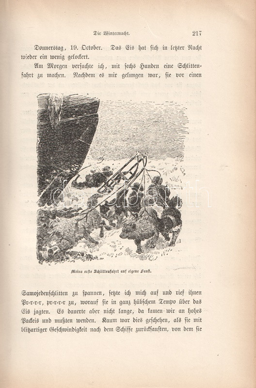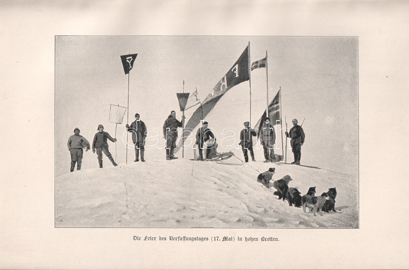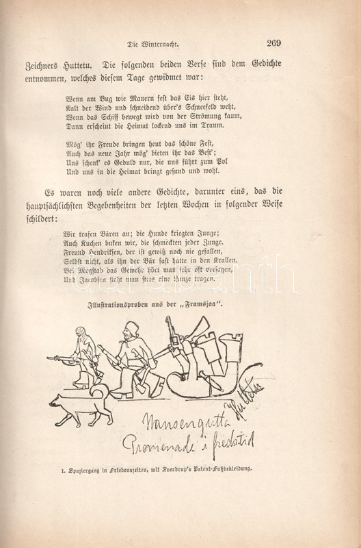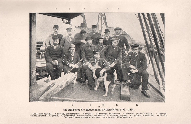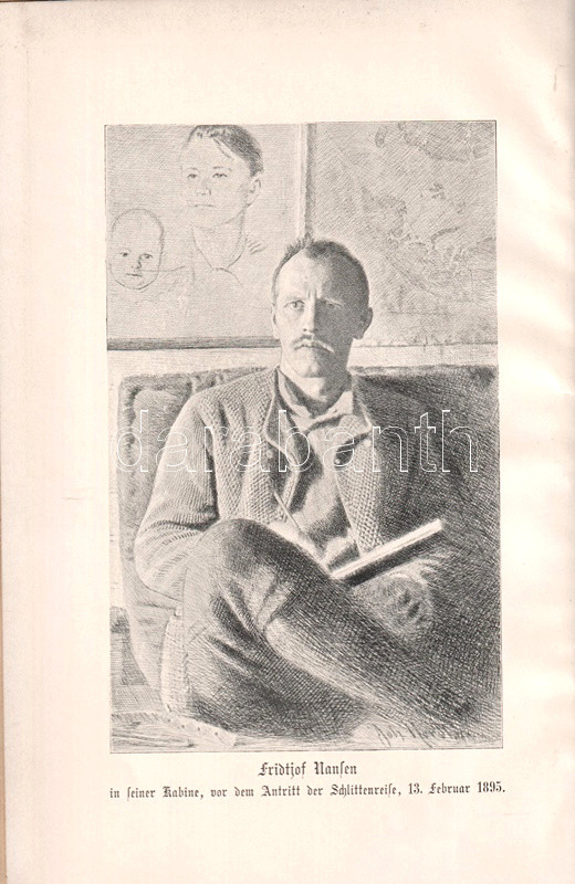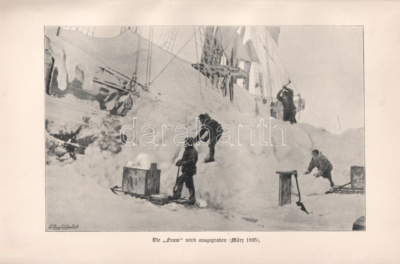 Fridtjof Nansen (1861-1930) dán származású norvég sarkkutató, zoológus, tengerbiológus, feltaláló. Több év előkészület után 1893-1896 között tette meg nevezetes északi-sarki expedícióját, mely ugyan nem érte el az Északi-sarkot, ám hajóval és kutyaszánnal lebonyolított útja minden korábbinál több információt szerzett a sarkvidék viszonyairól, illetve számos újítást jelentett a sarkkutatás módszertanával és csoportdinamikájával kapcsolatban. Szövegközti és egész oldalas felvételekkel, rajzokkal gazdagon illusztrált beszámolója először 1897-ben jelent meg, "Fram over Polhavet. Den norske polarfaerd 1893-1896" címmel. A kötet német fordítása még ugyanebben az évben megjelent, magyar fordítása pedig 1898-ban látott napvilágot, "Éjen és jégen át" címmel.