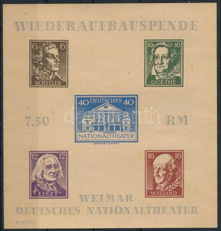 1946 Német Nemzeti Színház blokk sárgás gumival Mi 3 B (Mi EUR 90.-)