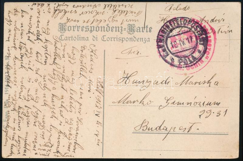 1918 Tábori posta képeslap "ZENSURIERT / S. M. Schiff Szent István" + "K.u.K. MARINAFELDPOSTAMT / POLA"