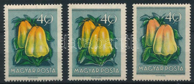 1954 Gyümölcsök (I.) 40f 2 bélyeg eltolódott színnyomattal + támpéldány
