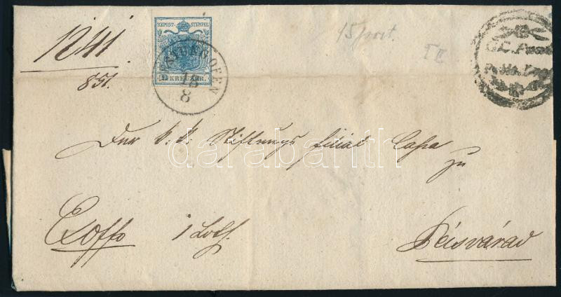 1851 9kr levélen "FESTUNG OFEN" - Pécsvárad