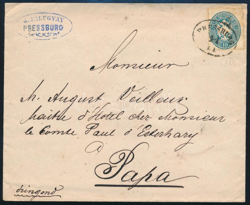 ~1863 10kr levélen "PRESSBURG" - PÁPA" (22.000)
