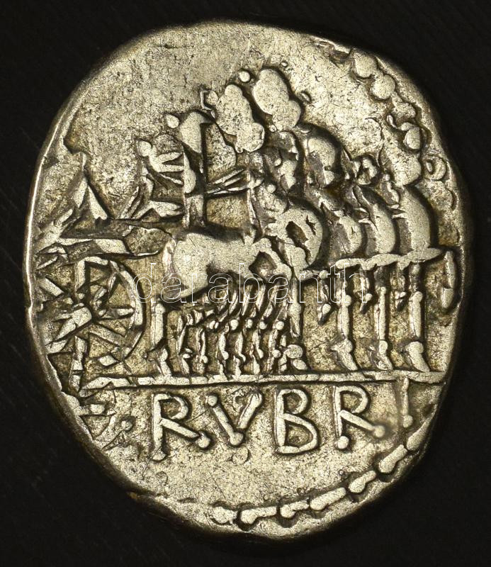 Roman Republic 87 BC Denarius Ag "[L.] RVBRI / DO[SSEN]" Head of Jupiter right / Triumphal quadriga to the right. "L. Rubrius Dossenus" (3,94g) T:XF,VF