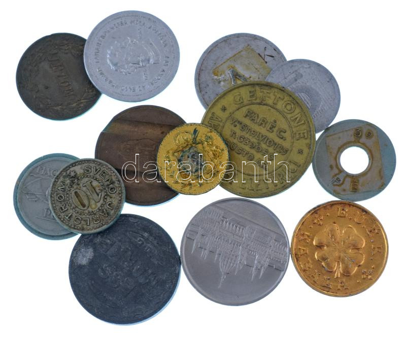 Vegyes 13db-os zseton-, emlékzseton-, bárca-, játékpénztétel T:XF-F