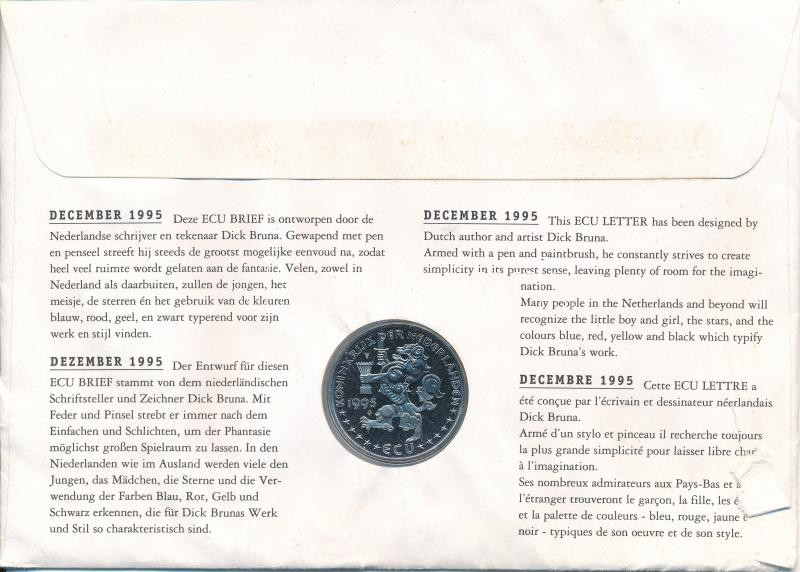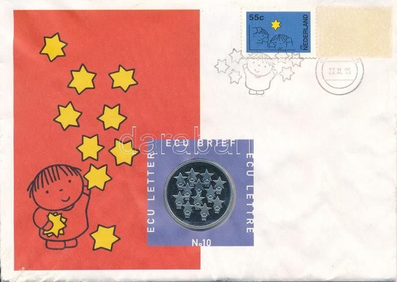 Netherlands 1995. 1 Ecu Cu-Ni "December" in damaged envelop with stamps C:UNC