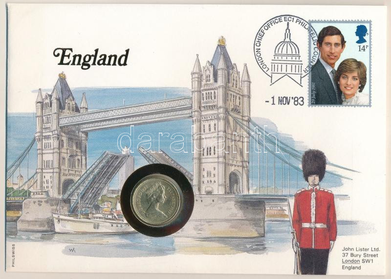 Great Britain 1983. 1 Pound in envelope with stamp and cancellation, with German description C:UNC