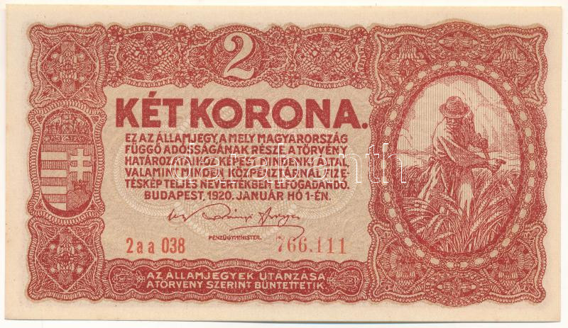 Hungary 1920. 2 Korona "2aa 038 766.111" C:AU