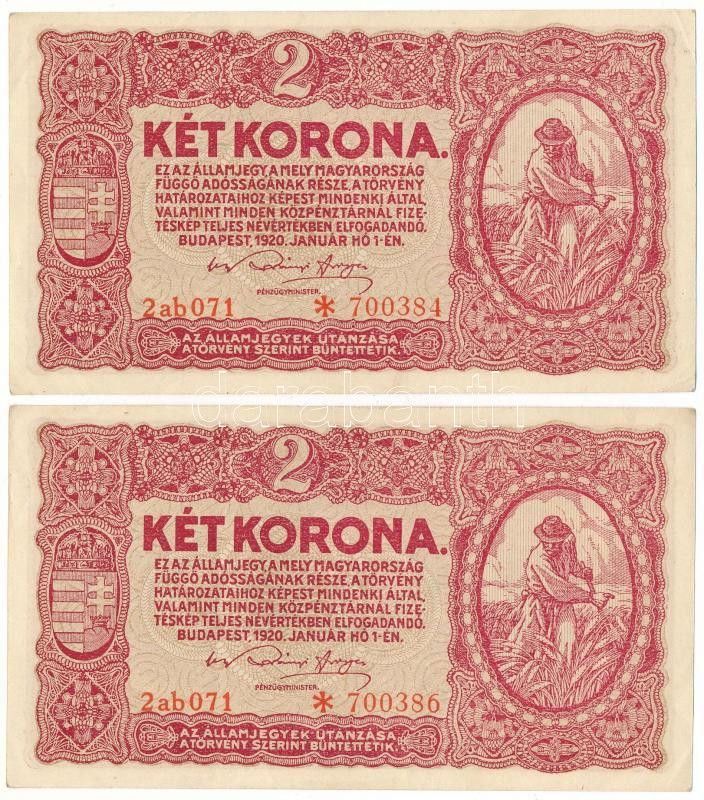 1920. 2K (2x) egyugrásos sorszámkövetők "2ab* 071 700384" és "2ab* 071 700386" T:AU,XF