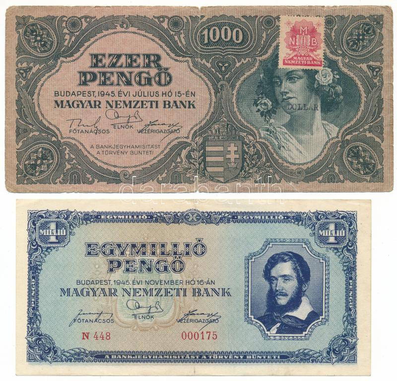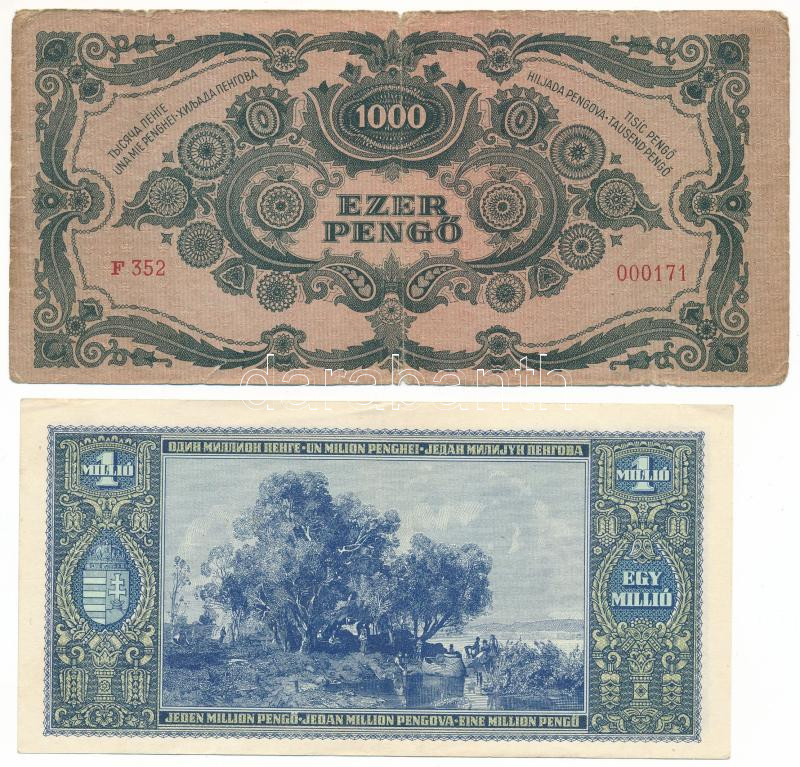 1945. 1000P alacsony "F 352 000171" sorszámmal + 1.000.000P alacsony "N 448 000175" sorszámmal T:XF,VG
