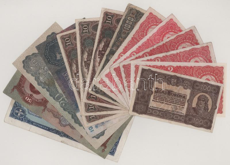 Vegyes, 14db-os korona, pengő tétel: 1915-1945. 20P-1.000.000P (3xklf) + 2K-1000K (11db) T:vegyes