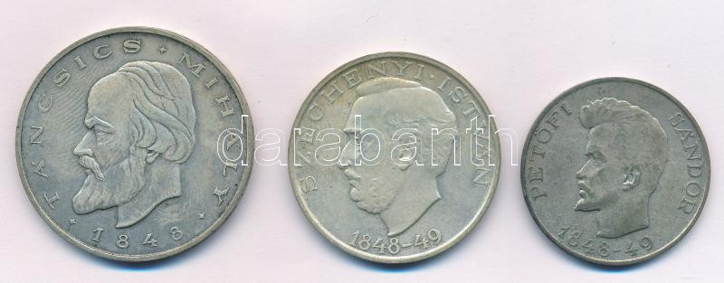 1948. 5Ft Ag "Petőfi" + 10Ft Ag "Széchenyi" + 20Ft Ag "Táncsics" "Szabadságharc sor" T:AU,XF patina