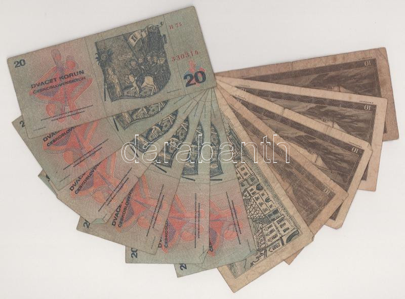Czechoslovakia 1960. 10 Korun (4x) + 1961. 25 Korun + 1970. 20 Korun (6x) C:F,VG