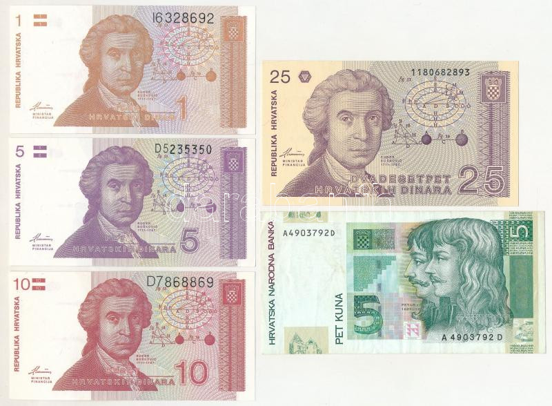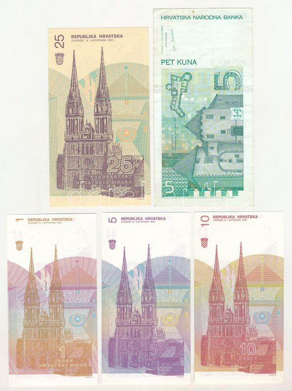 Horvátország 1991. 1D + 5D + 10D + 25D + 2001. 5D T:UNC-F