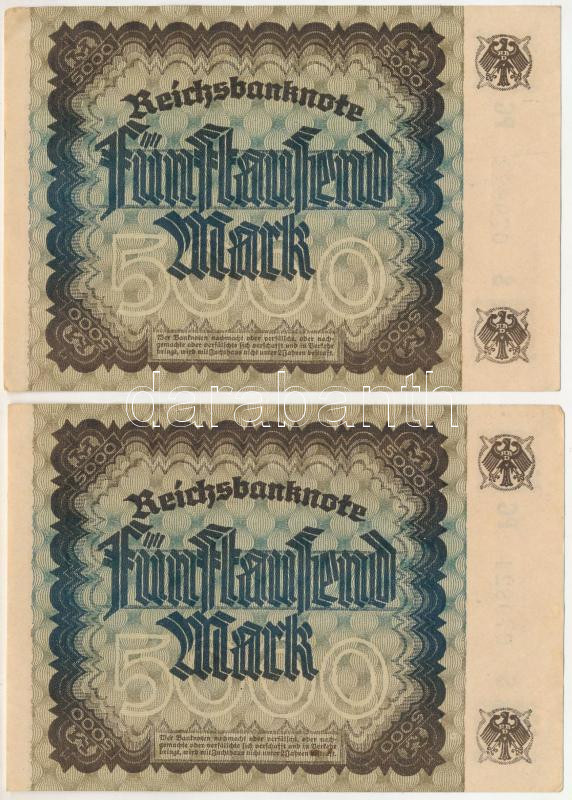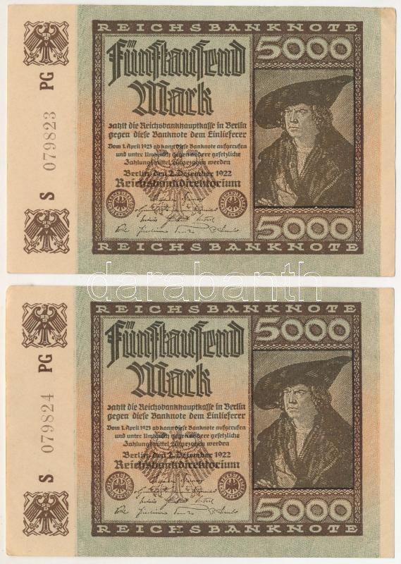 Német Birodalom 1922. 5000M (2x) sorszámkövetők "S 079823 - S 079824" T:XF