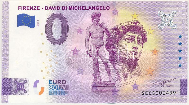 Italy 2023. 0 Euro "Firenze - David di Michelangelo" souvenir banknote with low "SECS000499" serial number C:UNC