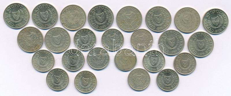 Ciprus 1983-2003. 1c Ni-sárgaréz (13xklf évszám) + 1983-2004. 2c Ni-sárgaréz (12xklf évszám) T:AU,XF