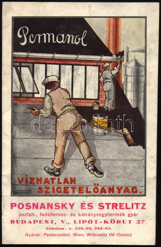 cca 1930 Permanol vízhatlan szigetelőanyag, Posnansky és Strelitz Bp. V. prospektus