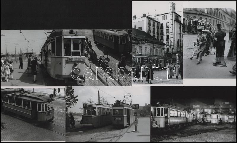 Budapesti villamosokról készült felvételek tétele (9, 19, 28, 44, 61, 68, 81, 83), amelyek eltérő időben készültek, 7 db modern nagyítás, jelzés nélkül, 15x10 cm és 10x15 cm