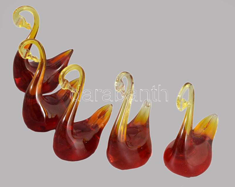 5 darab iparművész hattyú figura, hibátlan, m: 7 cm alatt