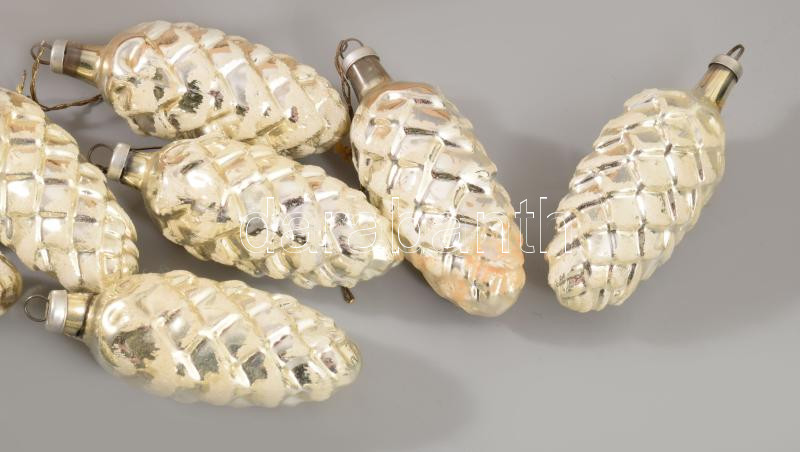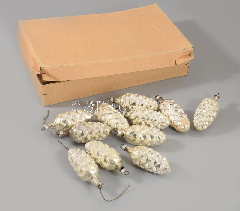 9 darabos üveg karácsonyi dísz szett, h: 8 cm