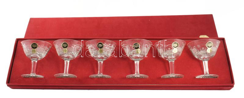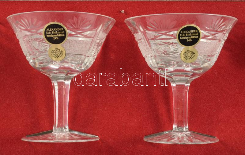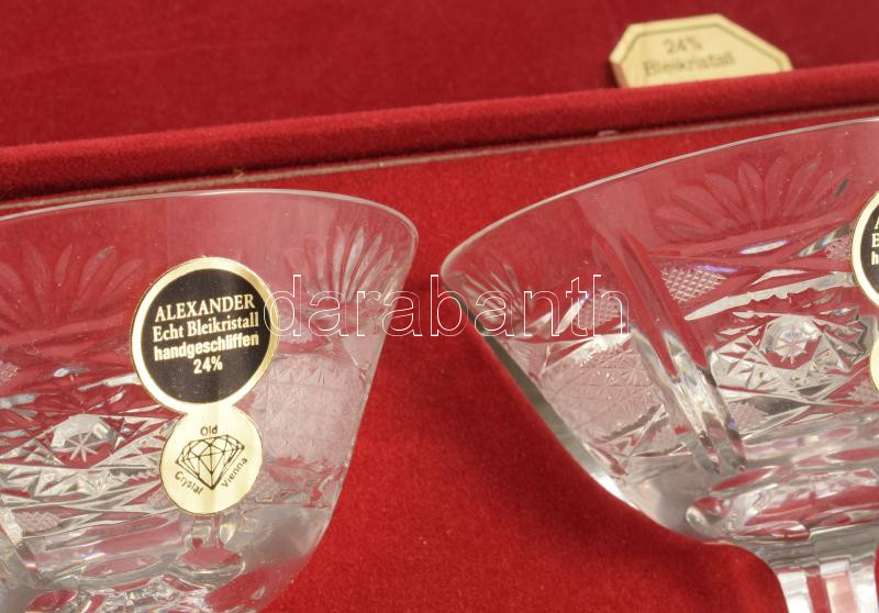 Alexander 24% ólomkristály talpas italos pohár szett, bársonybevonatú díszdobozban, poharak m: 9,5 cm, doboz 61x15 cm