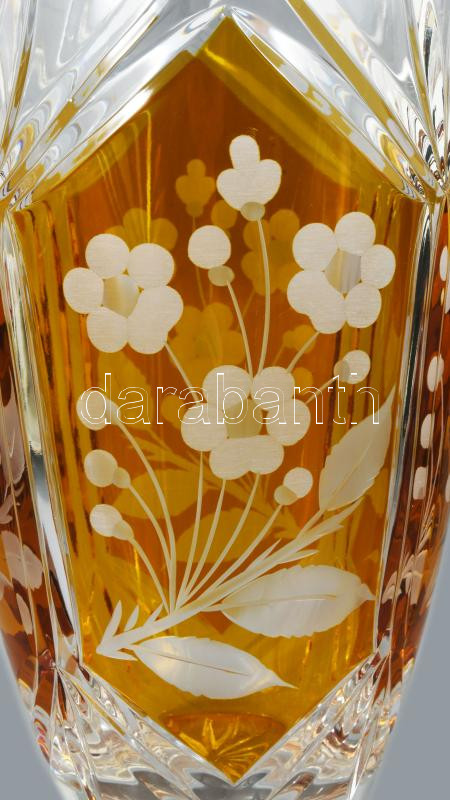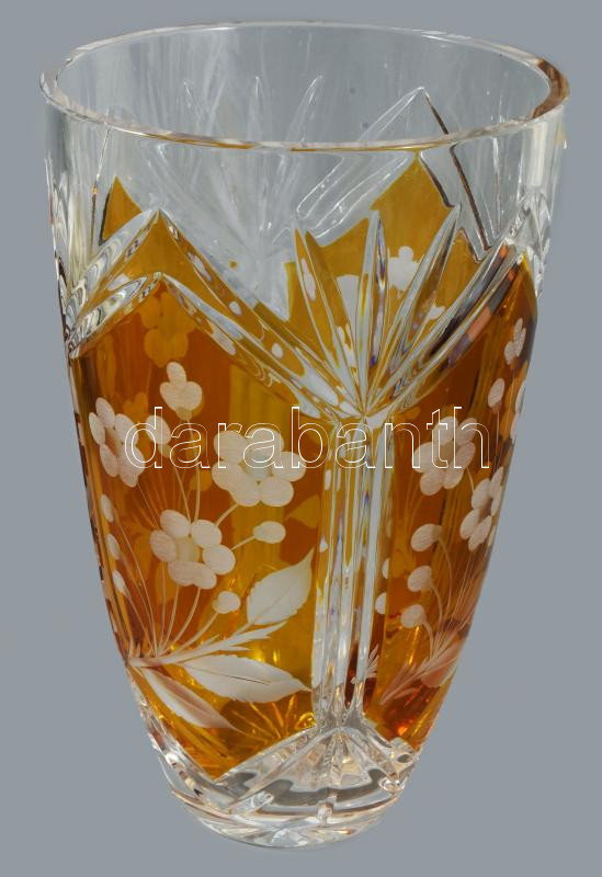 Borostyán pácolt kristály váza. Hibátlan 25 cm