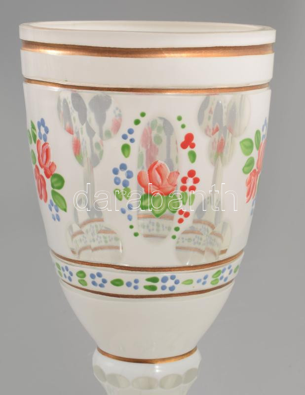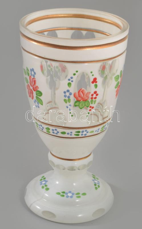 Cseh többrétegű üveg talpas kehely, hibátlan, m: 16,5 cm