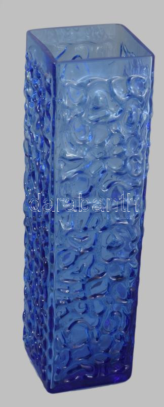 Ingrid Glass pikkelyes mintás hasábváza, anyagában színezett, jelzés nélkül, hibátlan, m: 30,5 cm