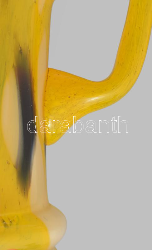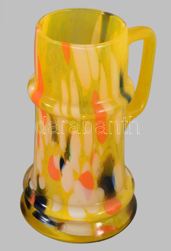 Iparművész színezett üveg korsó, jelzés nélkül, hibátlan, m: 21,5 cm