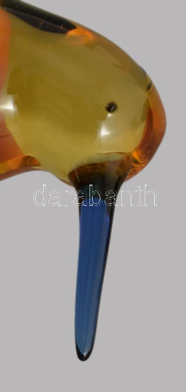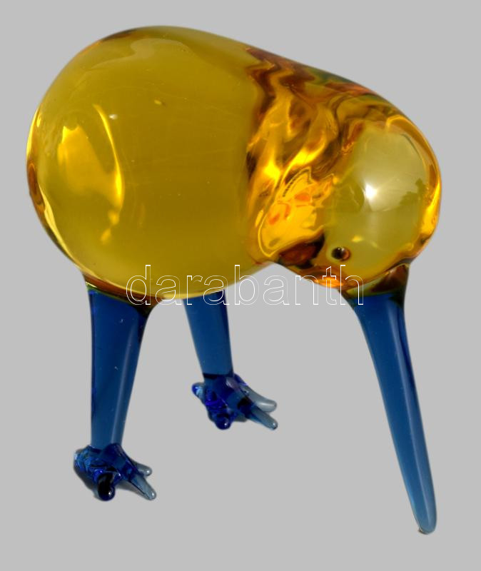 Iparművész üveg kivi madár figura, anyagában színezett, hibátlan, 5,5x6 cm