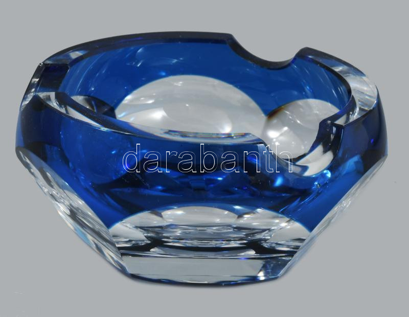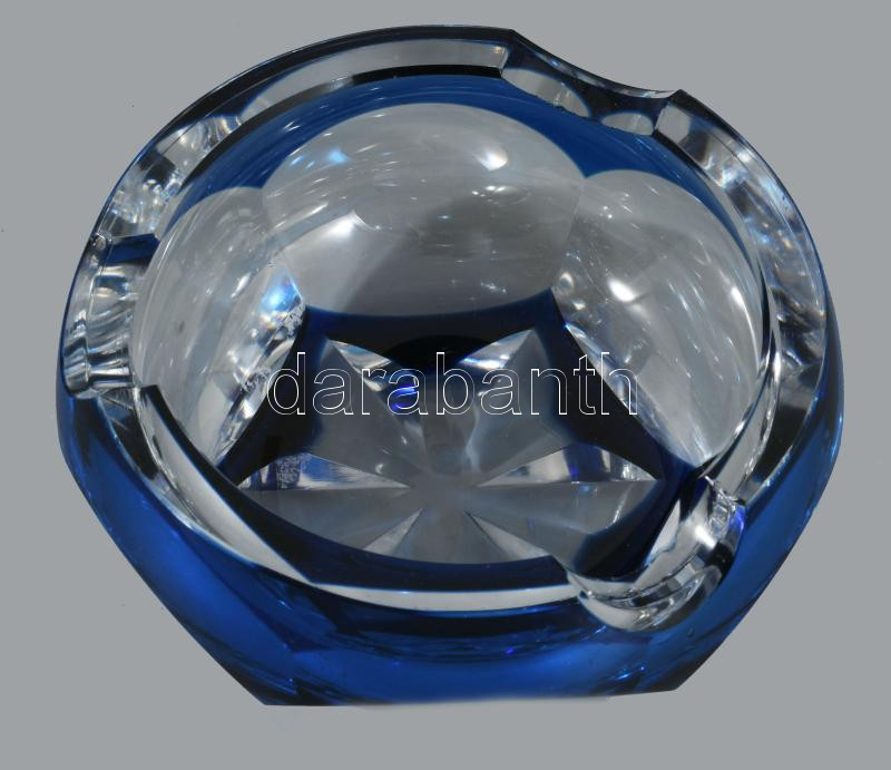 Kétrétegű hántolt kristály hamutál, d: 12,5 cm
