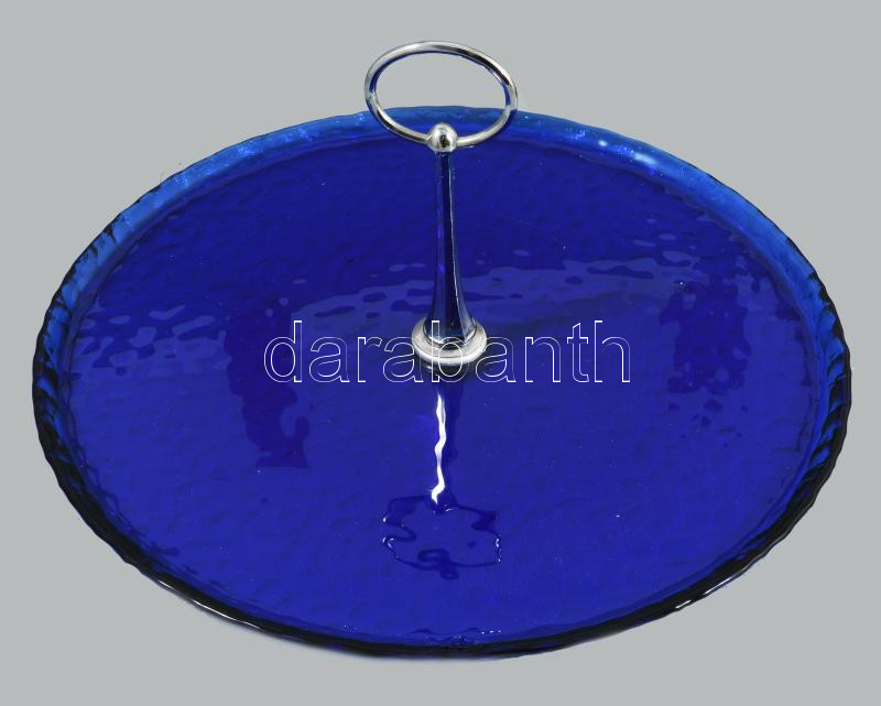 Királykék üveg asztalközép kínáló fogóval, d: 29 cm