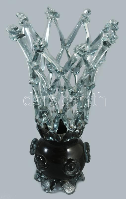 Magyar iparművész formált szakított üveg váza, jelzés nélkül, hibátlan, m: 27 cm