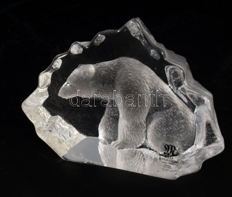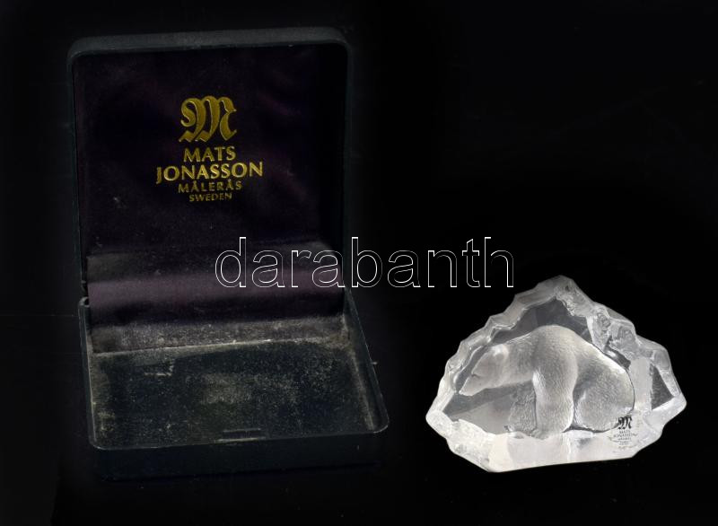Mats Jonasson (svéd, 1945-): Levélnehezék jegesmedve alakjával, jelzett, dobozában, 6x8 cm
