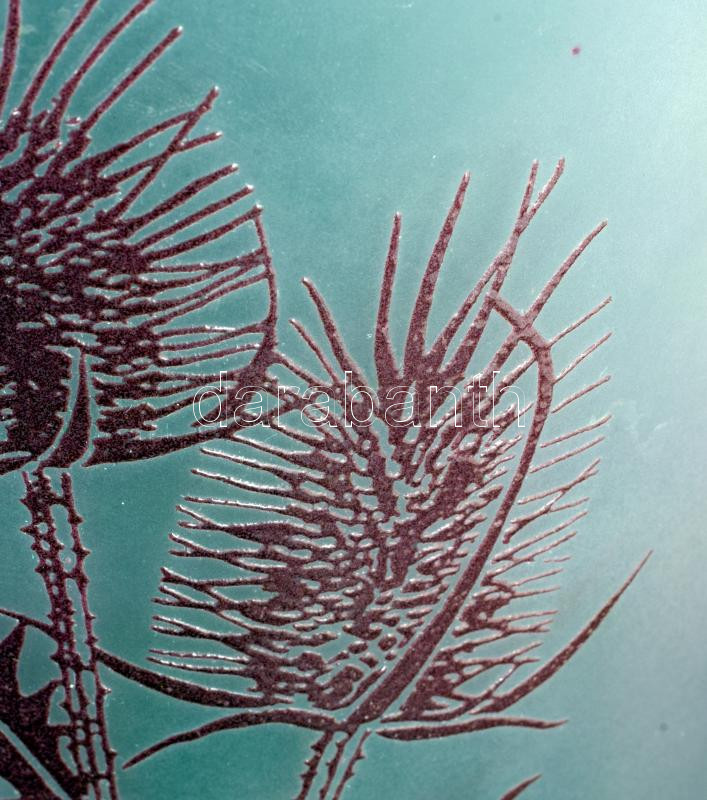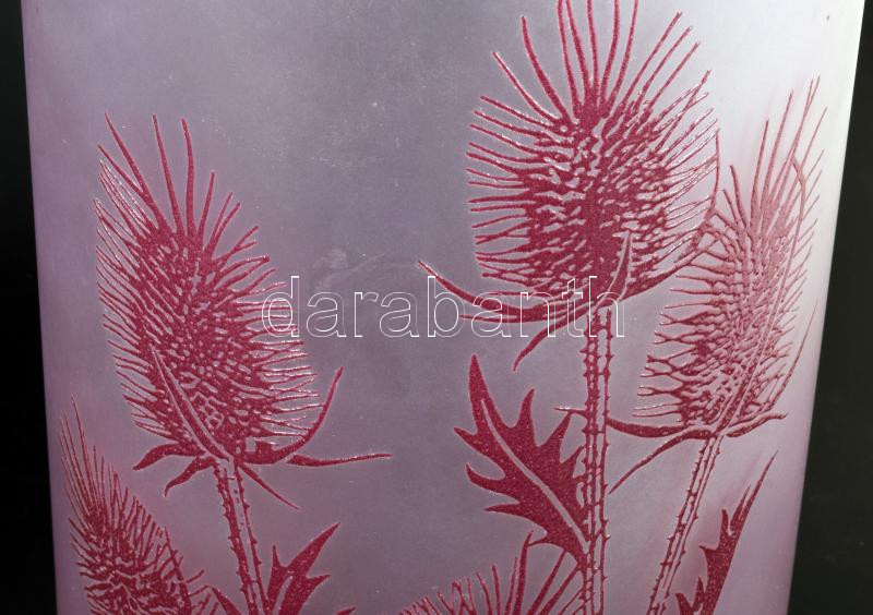 Nagy méretű virágos üveg váza. Anyagában színezett, mintás, hibátlan. 31 cm, párdarabja is megtalálható az árverésen d: 18 cm