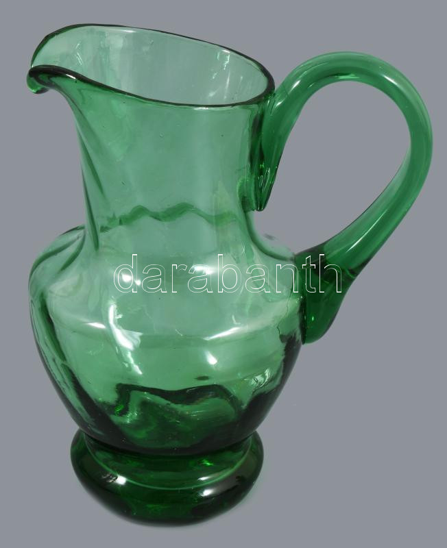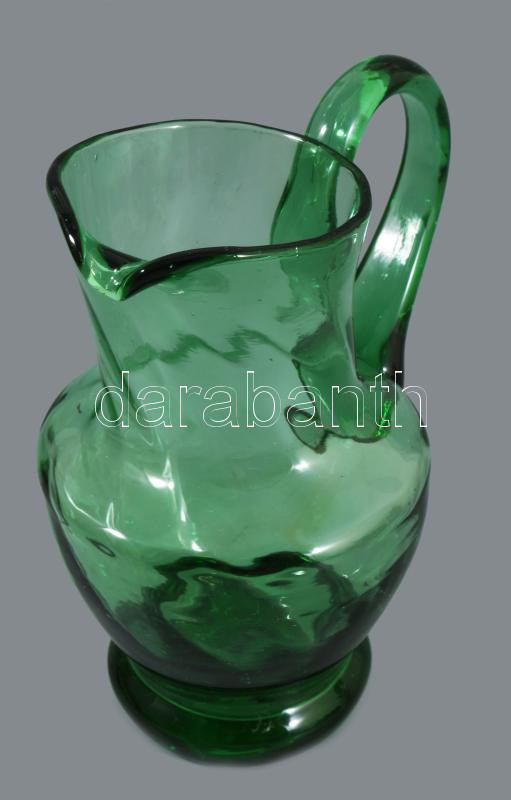 Parádi csavartbordás zöld üveg kiöntő, hibátlan, m: 14,5 cm