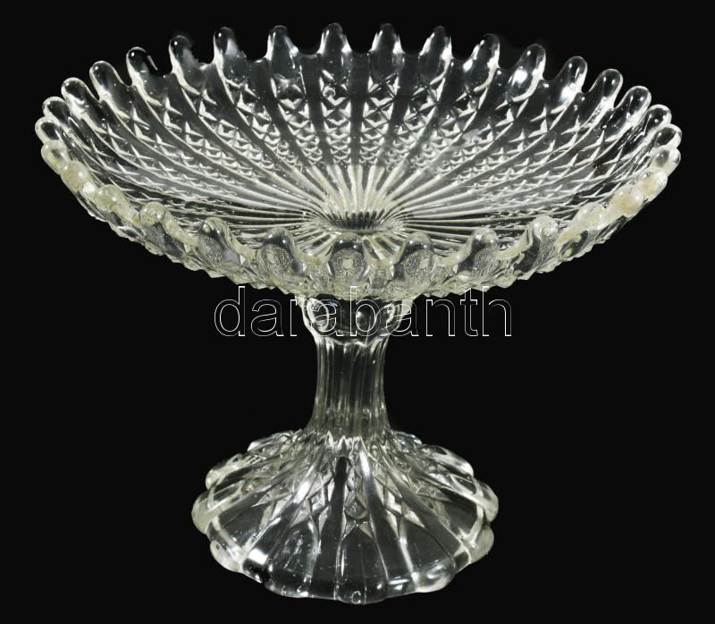 Régi üveg talpas kínáló, d: 22 cm, m: 17 cm