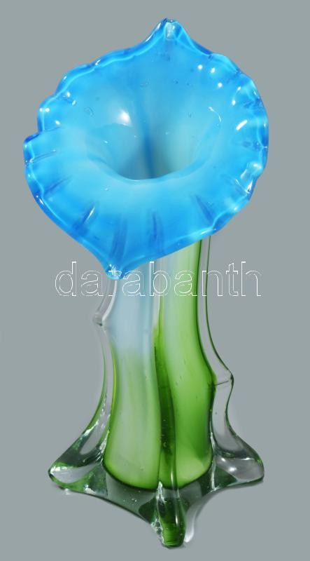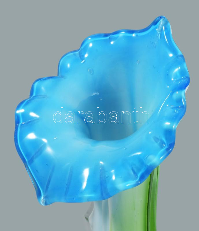 Virág formájú üveg váza. Anyagában színezett, hibátlan m: 20 cm