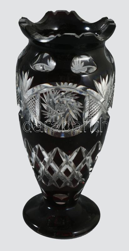 Vörösen pácolt ólomkristály váza, hibátlan, m: 22 cm